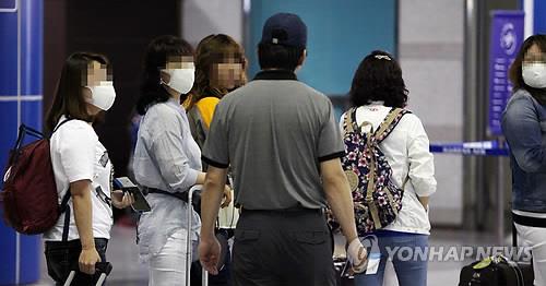 △ (청주=연합뉴스) 김형우 기자 = 전국적으로 메르스 여파가 이어지는 가운데 8일 청주공항 이용객들이 마스크를 쓴 채 항공기 탑승절차를 밟고 있다. 2015.6.8 vodcast@yna.co.kr (끝)