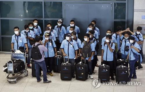 △ 9일 인천공항에 도착한 외국인들이 메르스 예방을 위해 마스크를 착용하고 있다.(AP=연합뉴스)
