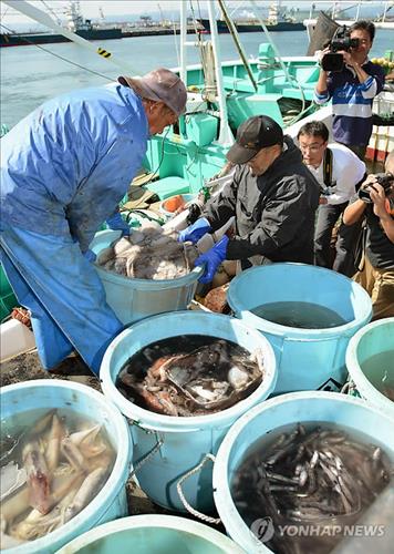 | △ 2013년 10월 일본 후쿠시마현 이와키지구 조합 어민이 잡아올린 수산물(교도.연합뉴스.자료사진) |