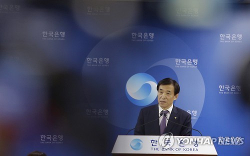 △ Governor of the Bank of Korea Lee Ju-yeol answers a reporter's question during a press conference on the benchmark interest rate at the bank's headquarters in Seoul, South Korea, Thursday, June 11, 2015. South Korea's central bank lowered its key interest rate to a historic low on Thursday, responding to a slump in exports and the prospect that the outbreak of the deadly MERS virus could slow the economy. (AP Photo/Lee Jin-man)