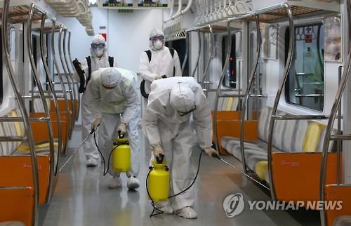 △ 메르스 물렀거라 (고양=연합뉴스) 김도훈 기자 = 9일 오후 경기도 고양시 서울메트로지축차량기지에서 방역 관계자들이 중동호흡기중후군(메르스) 예방 대책의 하나로 살균소독 및 방역작업을 하고 있다.2015.6.9 superdoo82@yna.co.kr