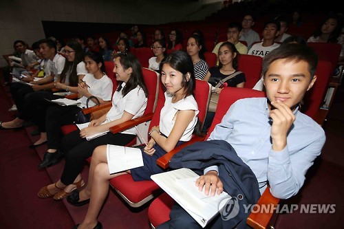 △ 서울대, 카자흐서 첫 입학 설명회 개최 (알마티=연합뉴스) 김현태 특파원 = 서울대학교가 11일 중앙아시아의 카자흐스탄에서 처음으로 입학설명회를 개최했다. 카자흐 최대 도시 알마티에서 열린 행사에서 대입을 앞둔 현지 인재들이 서울대 진학을 위한 구체적인 방법에 대해 설명을 듣고 있다. 2015.6.11 mtkht@yna.co.kr