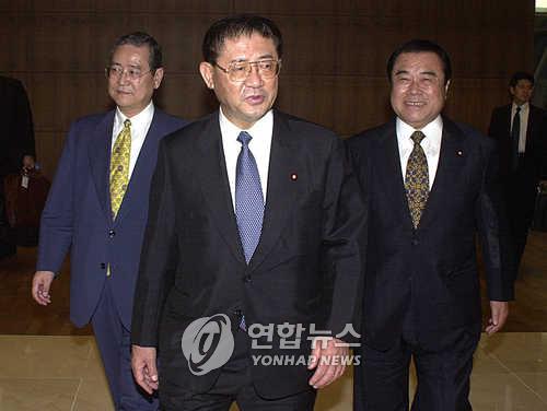 △ 2001년 자민당 간사장 시절의 야마사키 다쿠(가운데)