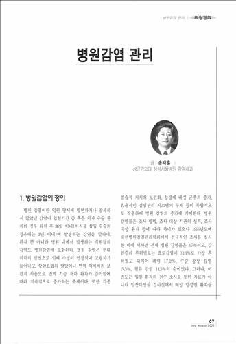 이 글에서 송 원장은 고령 환자가 증가하고 면역 억제제 등을 사용한 면역 기능 저하 환자가 증가함에 따라 병원 감염이 증가하고 있다고 설명했다.