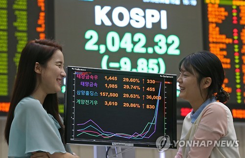 이날 코스피는 전날보다 9.85포인트(0.48%) 내린 2,042.32로 장을 마감했다.