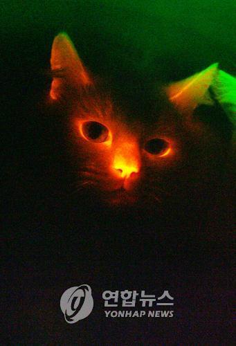| △ 빨갛게 빛나는 적색형질전환 복제고양이. 연합뉴스 자료사진(2007년) |