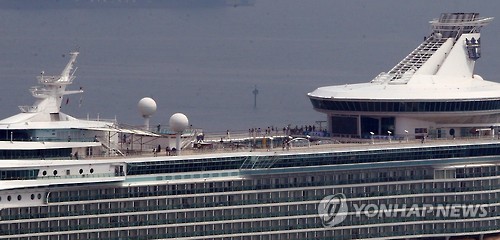△ 크루즈선 승객 부산항 '안내려' (부산=연합뉴스) 조정호 기자 = 10일 부산항 영도크루즈터미널에 입항한 '마리너 오프 더 시즈'(13만8천t)호 승객들이 배에서 내리지 않았다. 이날 부산항에 입항한 크루즈선 2척에 탑승한 중화권 여행객 6천여 명은 당초 부산시내 관광을 하려고 했으나 중동호흡기증후군(메르스) 여파로 배에서만 시간을 보냈다. 2015.6.10,<<연합뉴스 DB>>