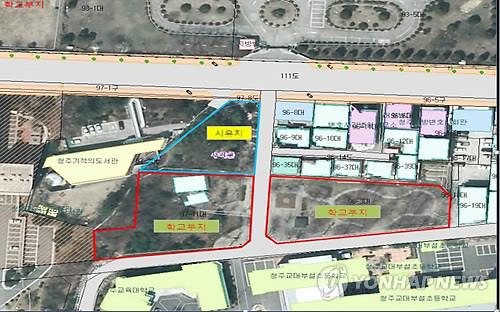 | △ 청주시가 서원보건소 신축 이전 부지로 점찍은 청주기적의 도서관 인근 교육부 땅. 이 땅은 청주교대가 관리하고 있다. <<연합뉴스 DB>> |