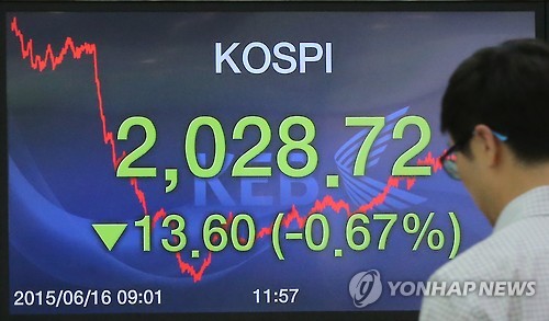 (서울=연합뉴스) 김수진 기자 = 코스피가 16일 대외 변수에 대한 경계 심리가 확산되며 2,020선 후반으로 되물림했다.