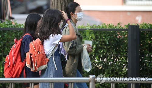 | △ 마스크 쓴 채 등교하는 학생들 (서울=연합뉴스) 임헌정 기자 = 16일 오전 서울 강남구 개포초등학교에서 학생들이 중동호흡기증후군(메르스) 우려로 마스크를 쓴 채 등교하고 있다. |