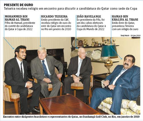 브라질 일간지 폴랴 지 상파울루는 카타르의 하마드 빈 칼리파 알 타니 전 국왕이 지난 2010년 초 리우데자네이루를 방문했을 때 남미 축구계 인사들에게 황금 시계를 선물로 돌렸다고 16일(현지시간) 보도했다.