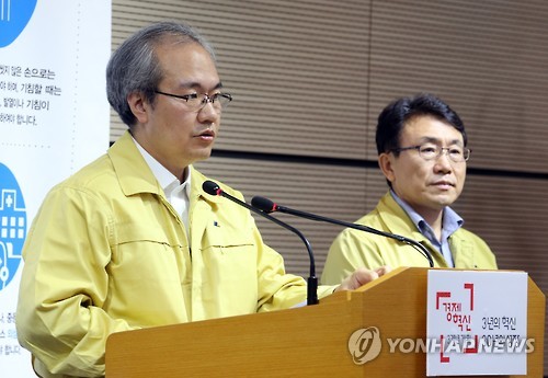 | △ 기자들 질문에 답하는 권준욱 기획총괄반장 (세종=연합뉴스) 배재만 기자 = 권준욱 중앙메르스관리대책본부 기획총괄반장(왼쪽)이 16일 오전 정부세종청사 보건복지부 공용브리핑룸에서 열린 중동호흡기증후군(메르스) 정례 브리핑에서 메르스 환자 현황에 대한 기자들의 질문에 답하고 있다. 오른쪽은 권덕철 총괄반장. 2015.6.16 scoop@yna.co.kr http://blog.yonhapnews.co.kr/f6464 |