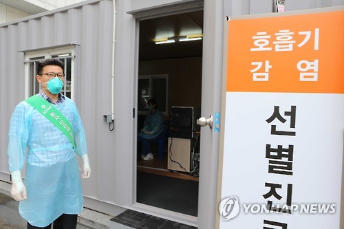 | △ 부산에도 국민안심병원 운영 (부산=연합뉴스) 조정호 기자 = '국민안심병원'으로 지정된 해운대백병원이 15일 병원 응급실 입구에 컨테이너로 만든 선별진료소를 운영하고 있다. 호흡기 감염 환자들이 이곳에서 1차 진료를 받는다. |