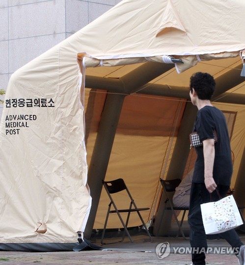 △ 충북대병원에 설치된 현장응급의료소. <<연합뉴스 DB>>