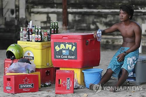 △ (자료사진) 인도네시아 해변가에서 맥주를 파는 상인.