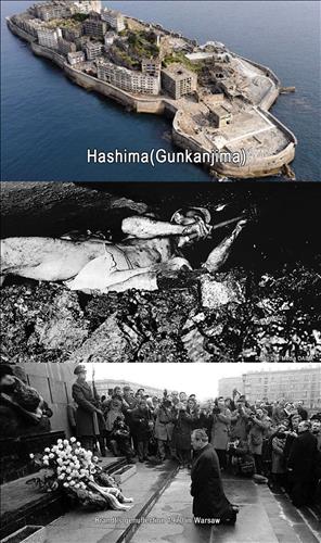 "일본 정부는 메이지(明治) 시대 산업시설의 유네스코 세계유산 등재를 추진하고 있습니다. 그 대표적인 곳은 하시마 탄광, 군함처럼 생겼다고 해서 군함도로 불립니다. 일본 정부는 관광 프로그램을 만들고, 국내외로 섬을 홍보하고 있습니다. 그러나 일본 정부는 이 섬의 역사에 대해 단지 일부분만을 알리고 있습니다. 하시마의 또 다른 이름은 바로 '지옥섬'입니다."