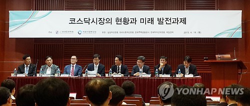△ '코스닥시장 현황과 발전과제' 정책 심포지엄 (서울=연합뉴스) 김수진 기자 = 18일 오후 서울 여의도 금융투자협회에서 한국증권학회와 자본시장연구원 공동 주최로 '코스닥시장의 현황과 미래발전과제' 정책 심포지엄이 열리고 있다. 2015.6.18 gogogo@yna.co.kr