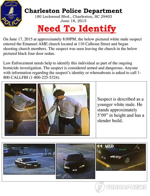 △ (찰스턴<미 사우스캐롤라이나주> AP/찰스턴 경찰=연합뉴스)