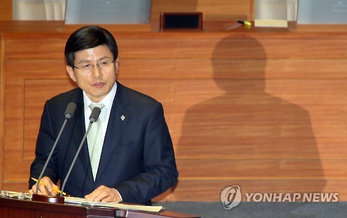 | △ 답변하는 황 총리 (서울=연합뉴스) 도광환 기자 = 국회 외교통일안보 분야 대정부 질문이 열린 19일 오전 국회 본회의에 출석한 황교안 국무총리가 의원의 질의에 답변하고 있다. |