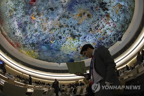 △ 유엔인권이사회(UNHRC) 정례회의가 열리는 유엔 회의장 (AP=연합뉴스 자료사진)