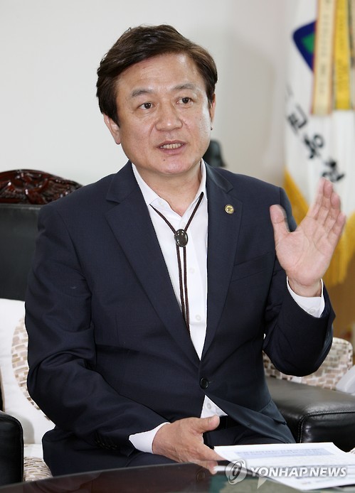 | △ 김병우 충북교육감 "무상급식 분담원칙 존중돼야" (청주=연합뉴스) 윤우용 기자 = 무상급식비 분담률을 놓고 충북도와 팽팽한 줄다리기를 하는 김병우 충북도교육감은 21일 "무상급식 합의 대원칙인 총액 대비 50대50 분담 원칙이 존중돼야 한다"고 강조했다. 2015.6.21 vodcast@yna.co.kr |