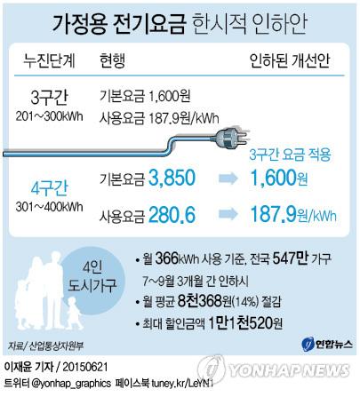 (서울=연합뉴스) 정아란 기자 = 정부가 21일 가정용 전기요금을 다음 달부터 3개월간 한시적으로 인하하겠다고 발표한 데 대해 온라인상에는 환영한다는 의견에서부터 이번 조치가 전력난으로 이어질지 우려된다는 주장까지 다양한 누리꾼들의 글들이 올라왔다.