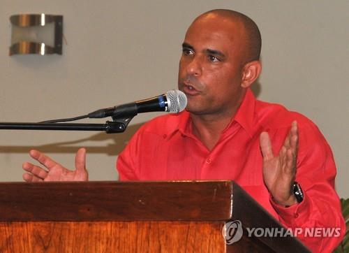 △ 아이티 대통령 선거 후보로 등록했다가 자격을 박탈당한 로랑 라모트 전 총리가 지난 5일 기자회견에서 음모설을 제기하고 있다.(EPA=연합뉴스DB)