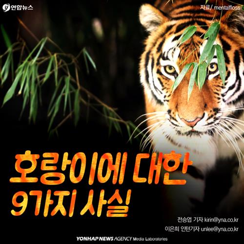 (서울=연합뉴스) 전승엽 기자·이은희 인턴기자 = 야생에는 호랑이 3천 마리가 있는 반면, 미국의 철창에는 5천∼1만 마리가 갇혀 있다고 한다. 이밖에도 호랑이에 대한 놀라운 사실을 알아본다.