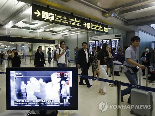| △ (방콕 AP=연합뉴스) 지난 19일 태국 방콕 수완나품 공항에 열감지기가 설치돼 있는 모습. 전날 태국에서 첫 번째 메르스 감염 확진 사례가 발생했다. |