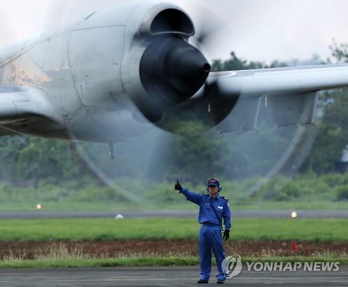 △ 23일 일본해상자위대 P3C기가 필리핀 팔라완섬의 공항을 이륙하는 장면(EPA.연합뉴스)