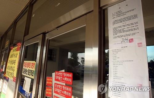 | △ 청주대 본관에 붙은 법원 고시문. <<연합뉴스 DB>> |