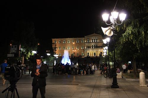 아테네 시민들은 광장 주변 카페의 야외석에서 커피와 담배, 대화를 즐기고 있었다. 선글라스를 쓴 은발의 노인들이 광장의 벤치에 앉아 햇살을 쬐거나 연인들이 나란히 앉아 밀어를 나누는 모습 등은 여느 주말과 다르지 않았다.