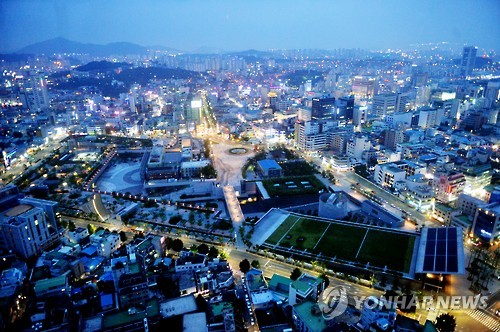 | △ 오는 9월 개관을 앞둔 광주 동구 국립아시아문화전당이 주변 도심과 함께 화려한 야경을 선보이고 있다. |