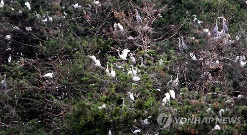 (청주=연합뉴스) 김형우 기자 = 우리나라 전역에서 흔히 볼 수 있는 여름 철새인 백로 수백 마리가 도심 한복판인 청주남중 뒷산에 둥지를 튼 이유에 관심이 쏠리고 있다.