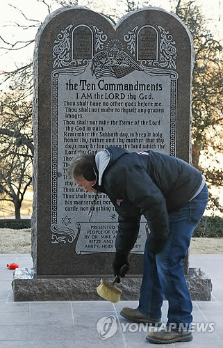 (샌프란시스코=연합뉴스) 임화섭 특파원 = 미국 오클라호마 주 대법원이 구약성경에 나오는 십계명이 새겨진 기념물을 주의회 의사당 부지에서 철거하라는 판결을 내렸다.