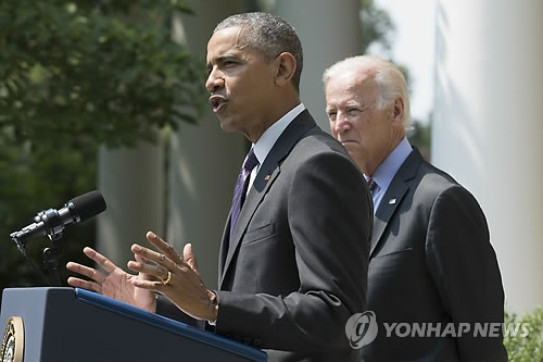 △ 오바마, '미-쿠바 국교 정상화' 선언 (워싱턴 EPA=연합뉴스) 버락 오바마 미국 대통령(왼쪽)이 1일(현지시간) 워싱턴D.C. 백악관 로즈가든에서 쿠바와의 국교 정상화를 공식 선언하는 성명을 발표하고 있다. 양국 정상은 대사관 재개설에 합의하는 내용을 담은 서한을 이날 오전 교환, 1961년 1월3일 쿠바와 단교한 이래 54년 6개월여 만에 적대적 관계를 청산하고 외교관계를 정식으로 복원하게 됐다. 2010596@yna.co.kr