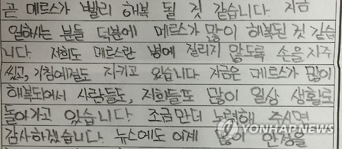 부산시에 "메르스 퇴치 고마워요" 초등생 감사편지