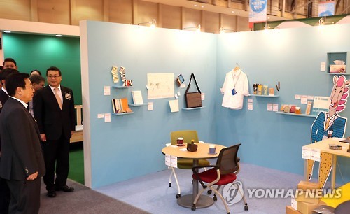 △ (부산=연합뉴스) 조정호 기자 = 3일 부산시 해운대구 벡스코에서 열린 '사회적기업 박람회'에서 서병수 시장 등이 사회적기업 제품을 소개하는 라이프스타일관을 살펴보고 있다. 5일까지 열리는 전시행사에는 전국에 있는 사회적 기업, 협동조합, 마을기업 등 200여 곳이 참가했다. 2015.7.3 ccho@yna.co.kr