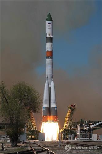 | △ (EPA=연합뉴스) 지난 4월 말 카자흐스탄 바이코누르 우주기지에서 프로그레스-M27M 우주화물선을 탑재한 '소유스 2.1a' 로켓이 발사되는 모습. 우주선은 이후 정상궤도에 진입하는데 실패해 지구로 추락했다. |