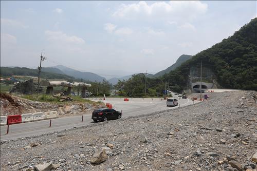 2004년 2월 시작된 이 공사는 구불구불한 기존 2차로를 4차로로 확장하는 것으로, 당초 올해 말 준공 예정이었다. 터널도 뚫고 다리도 완성돼 공정률이 93%에 달했지만 갑자기 경남기업 사태가 터지면서 중단되고 말았다.