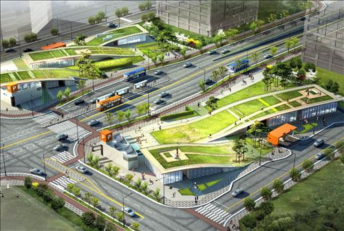 주차장 지상은 산책로, 벤치, 바닥분수 등을 갖춘 공원으로 꾸며진다.