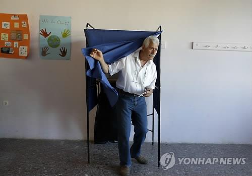 | △ (아테네 AP=연합뉴스) 국제 채권단의 채무 협상안 수용 여부를 묻는 그리스 국민투표가 5일 실시됐다. 아테네의 한 투표소에서 한 남성이 투표하고 있다. |