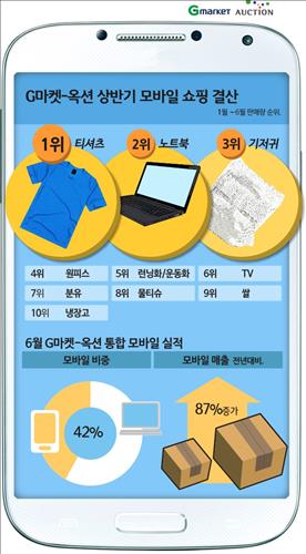 상반기 모바일 구매 1위는 티셔츠…G마켓·옥션