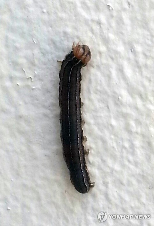 (김제=연합뉴스) 김진방 기자 = 전북 김제의 주택가와 초등학교에서 무더기로 발견된 검은 벌레는 멸강나방(학명 Pseudaletia separata)의 유충인 '멸강충'으로 확인됐다.