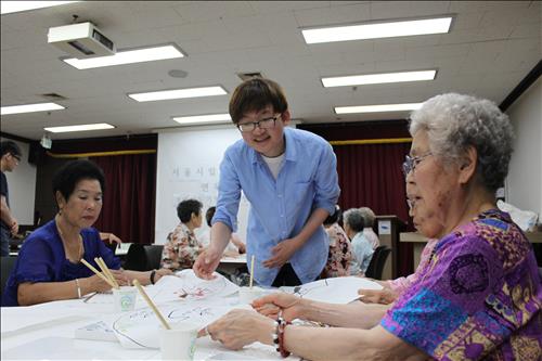 서울시립대 학생들, 어르신 100명과 '부채만들기'
