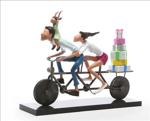 (서울=연합뉴스) 김희선 기자 = 아이를 목에 태운 아버지와 어머니가 선물을 가득 실은 채 2인용 자전거를 타고 집으로 달려간다. 자전거 페달을 힘껏 밟는 아버지와 어머니, 신이 나 두 손을 번쩍 든 아이의 얼굴에는 웃음꽃이 활짝 피어 있다.