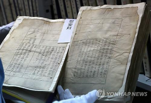 | △ 옛 만주국 당시 관동군사령부 등이 남긴 일제사료 10만 권을 정리·연구하고 있는 중국 지린성기록보관소(이하 기록보관소)가 지난해 처음으로 정리해 공개한 일본군 위안부 관련 사료들.(연합뉴스 사진자료) |