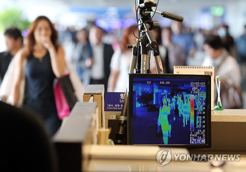 | △ 홍콩독감, 입국자 검사하는 검역소 직원 (영종도=연합뉴스) 최재구 기자 = 9일 인천국제공항에서 검역소 직원들이 홍콩발 항공기를 통해 입국한 승객들의 체온을 체크하고 있다. 질병관리본부는 홍콩에서 유행하고 있는 '홍콩 계절 인플루엔자(홍콩 독감)'의 국내 유행을 막기 위해 홍콩 여행객에 대한 입국 검역을 강화한다고 밝혔다. |
