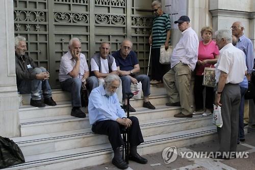 | △ 그리스 은행 개점 기다리는 연금수령자들(EPA=연합뉴스) |