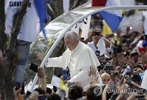 (서울=연합뉴스) 최평천 기자 = 파라과이를 방문 중인 프란치스코 교황이 참석한 가톨릭 행사에 동성애 인권운동가가 초청됐다.
